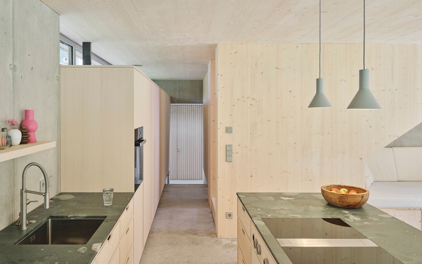 Die klare Formensprache, natürliche Materialien und handwerkliche Präzision prägen das gesamte Raumkonzept.