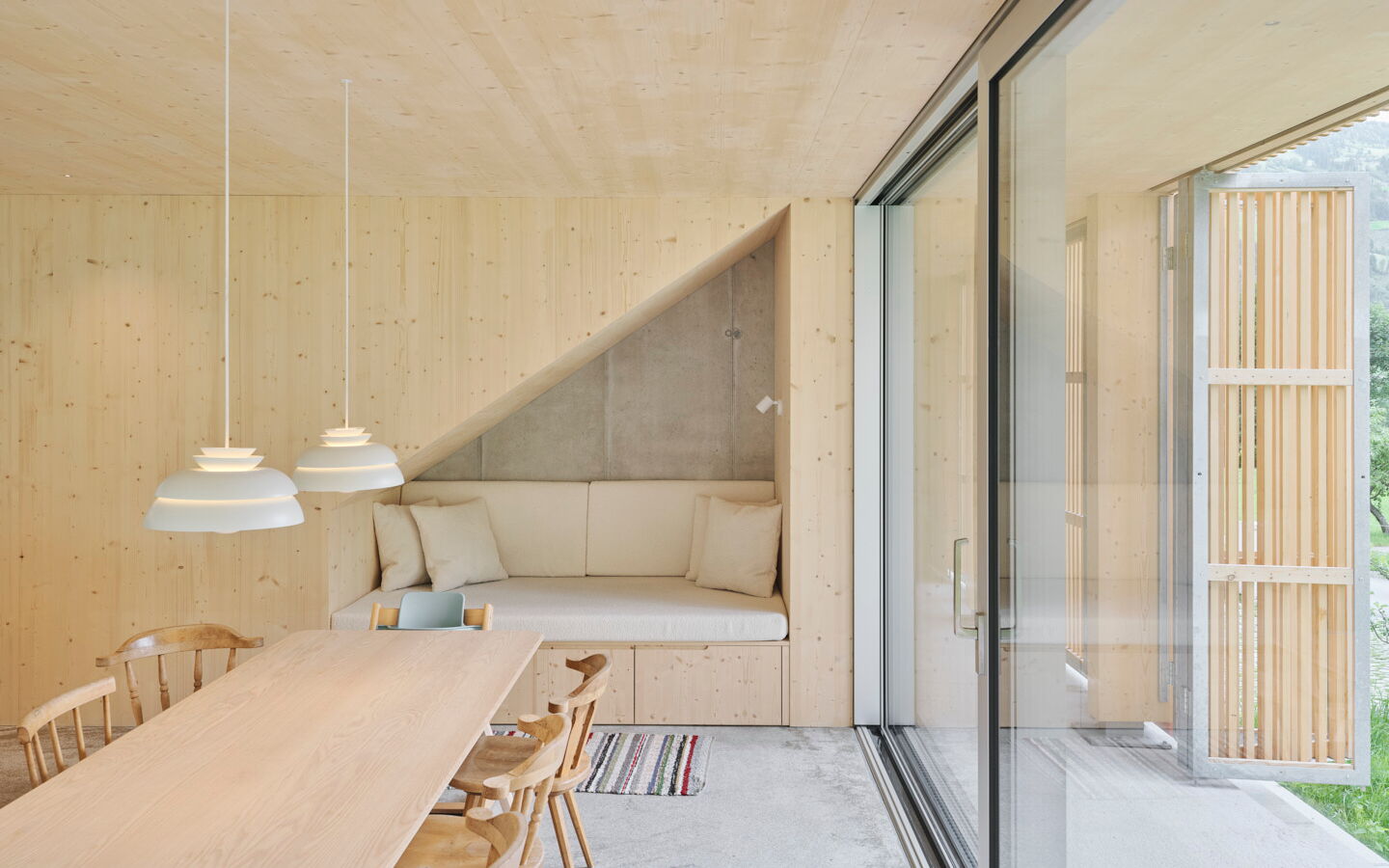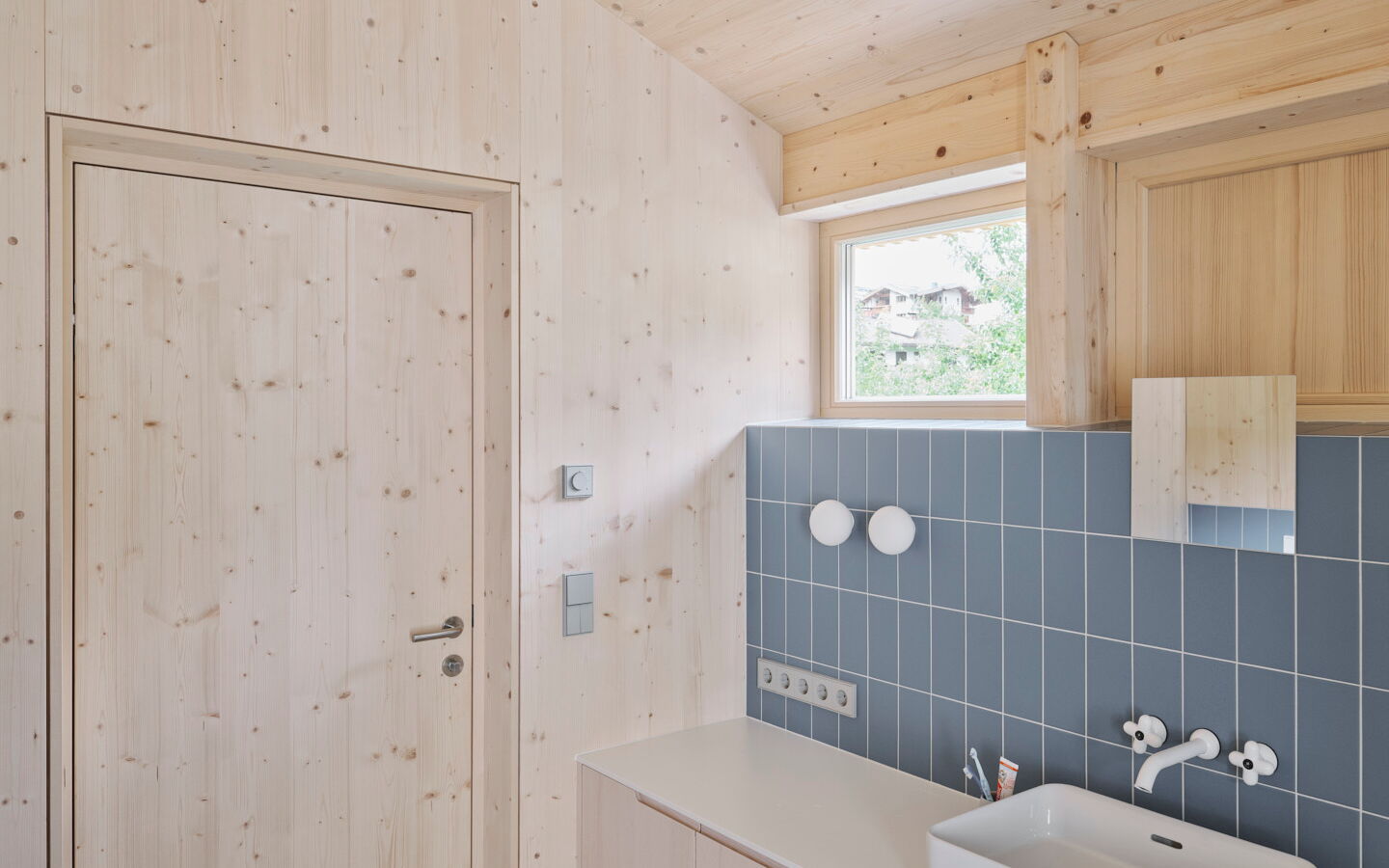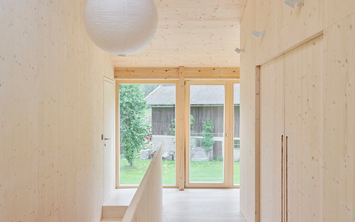 - Innentüren in Fichte bündig mit Schattenfuge in die Wand integriert